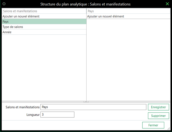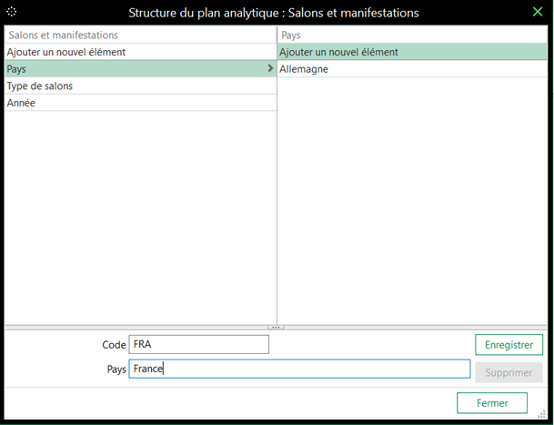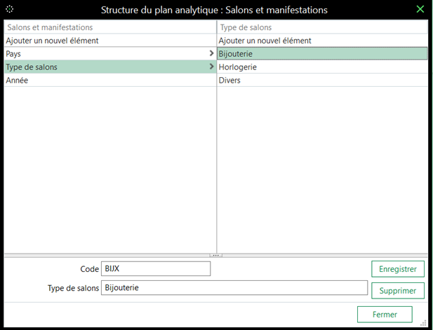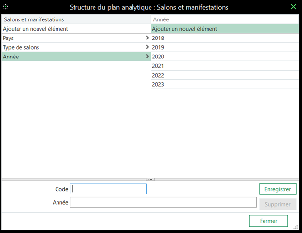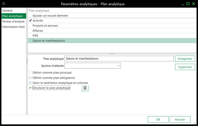 Il est possible de créer un nouvel énuméré dans cette fenêtre. Il est automatiquement créé dans la structure du plan analytique.
