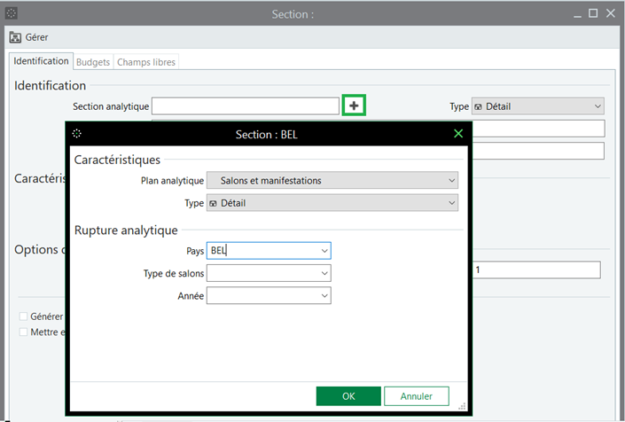 Tous les éléments de structure du plan analytique sont proposés sauf le dernier, car il n’est pas judicieux d’avoir des sections analytiques de type total pour chacune des sections analytiques de type détail.