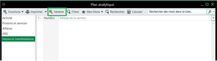 Sélectionner le plan analytique, puis cliquer sur le bouton « Générer »