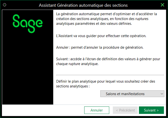 Pour effectuer la génération des sections analytiques, il convient d’effectuer les manipulations suivantes :
