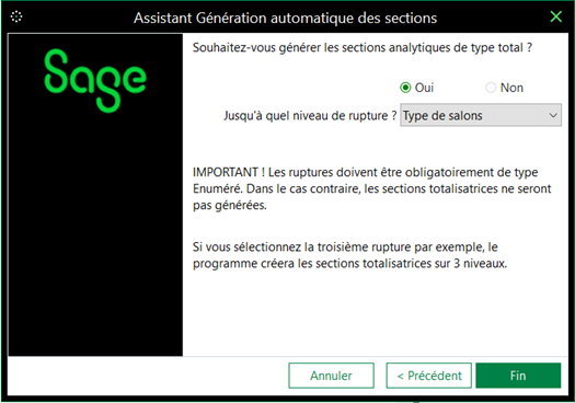 Cette dernière fenêtre propose la génération des sections analytiques de type total. L’application propose de choisir le niveau de rupture.